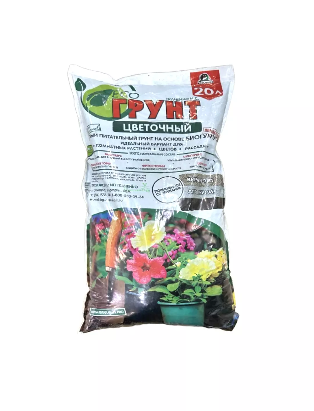 Грунт ЦВЕТОЧНЫЙ ЭКОгрунт - это универсальный готовый питательный грунт для растений на основе торфа и биогумуса с повышенным содержанием вермикулита и агроперлита. Является идеальным вариантом для комнатных растений, цветов, "зимнего сада", рассады