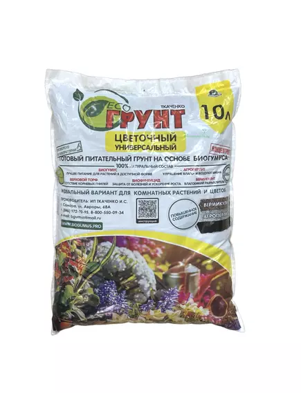 Грунт ЦВЕТОЧНЫЙ ЭКОгрунт - это универсальный готовый питательный грунт для растений на основе торфа и биогумуса с повышенным содержанием вермикулита и агроперлита. Является идеальным вариантом для комнатных растений, цветов, "зимнего сада", рассады