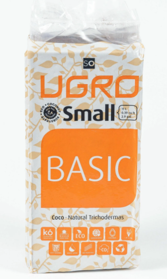 UGro Small представляет собой 750-ти граммовый брикет прессованной кокосовой «пыли» с низким содержанием кокосовых волокон. Необходимо всего 4 литра воды, чтобы превратить субстрат в 11 литров высококачественного кокосового «торфа». Данный субстрат подходит для всех видов однолетних и сезонных культур.