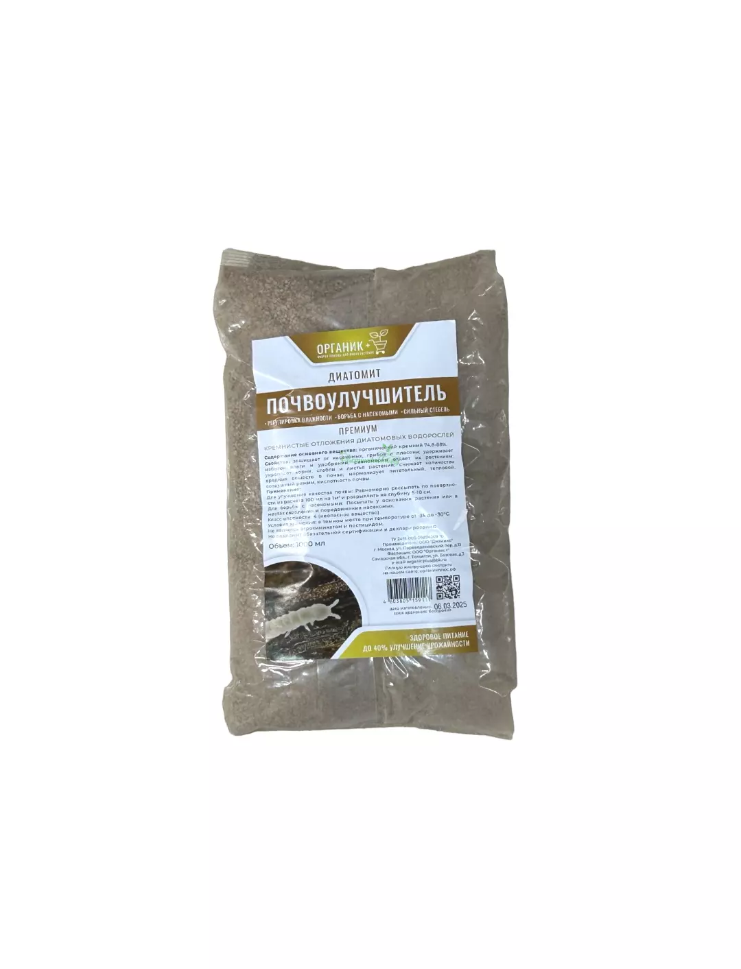 Органик+ Диатомит фр. 0.5-1.8 мм — это натуральный, высокоочищенный минеральный продукт, представляющий собой мелкие гранулы (0.5-1.8 мм) окаменевших диатомовых водорослей. Эта фракция обеспечивает его более равномерное распределение в грунте и подходит для более деликатных применений.