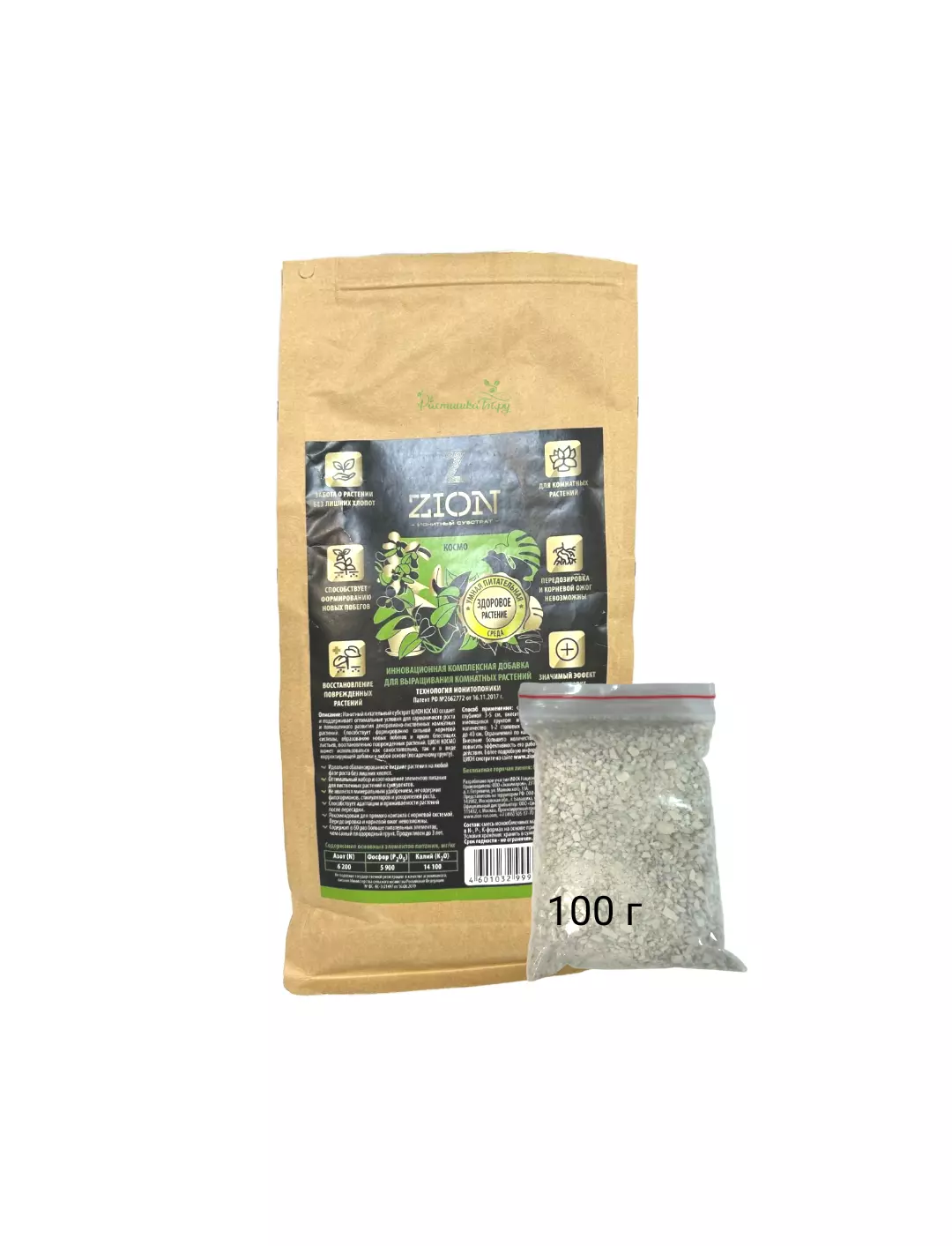 ЦИОН создает и поддерживает оптимальные условия для гармоничного роста и полноценного развития декоративно-лиственных комнатных растении. Способствует формированию сильной корневой системы, образованию новых побегов, ярких блестящих листьев, восстановлению поврежденных растений. ЦИОН может использоваться как самостоятельно, так и в виде корректирующих добавок к любой основе (посадочному грунту). Ионитный субстрат ЦИОН КОСМО может быть использован для обеспечения растения сбалансированным набором элементов питания на любом этапе его жизненного цикла. В течение периода полезного действия ЦИОНа никаких дополнительных подкормок растению не потребуется.
