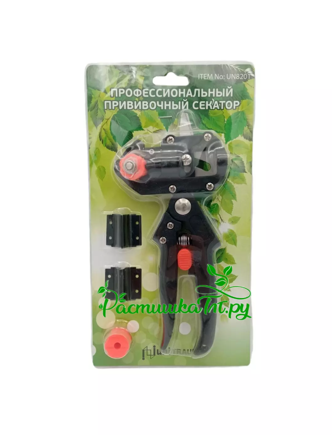 Секатор UN-8201 Unitraum - это инструмент для прививочной работы, который позволяет соединять две ветки или побеги вместе. Он оснащен двумя лезвиями, которые обеспечивают точный разрез, а также специальный валик для фиксации ветвей.