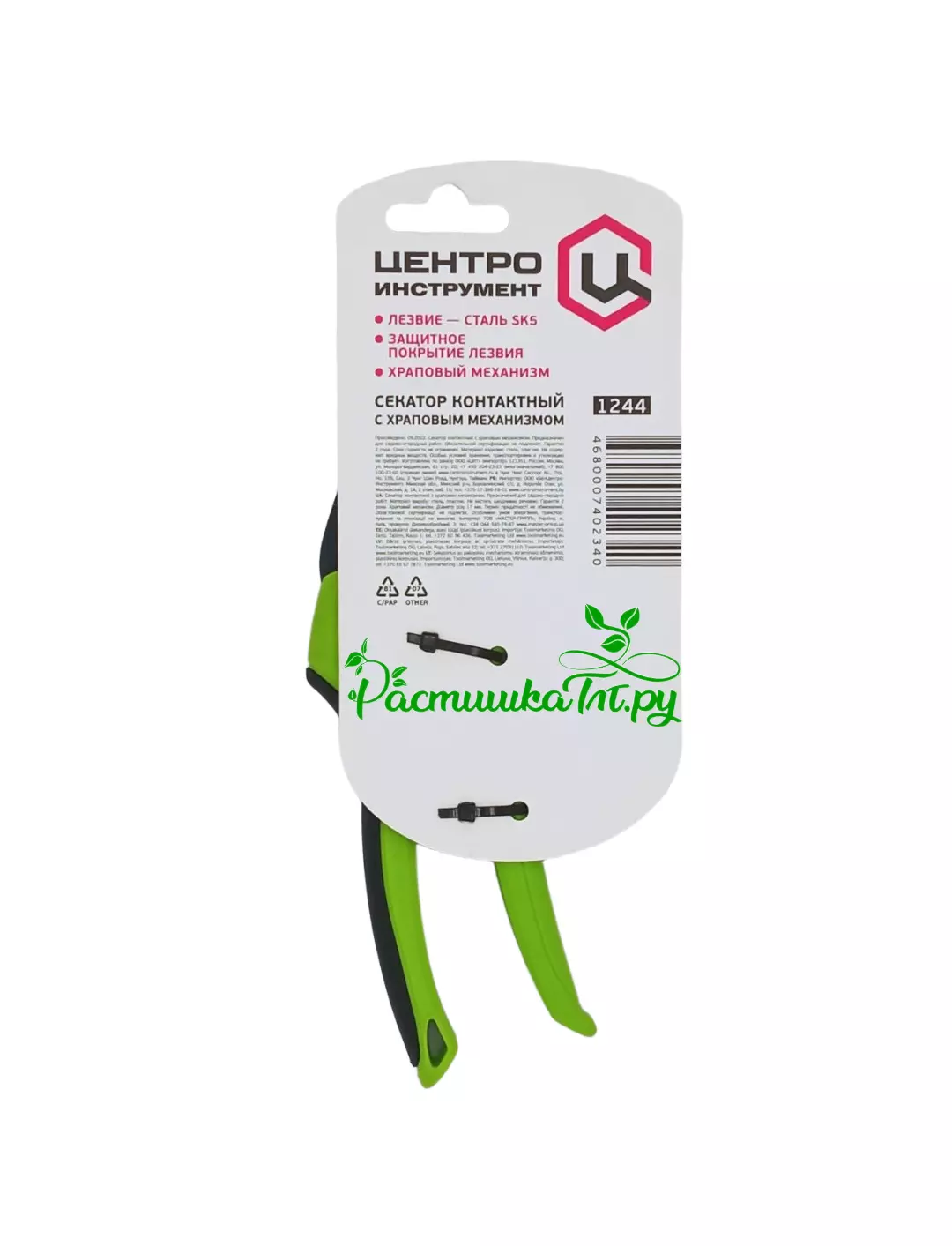 Секатор контактный с храповым механизмом ЦИ 1244 - это инструмент, который используется для обрезки веток и побегов деревьев и кустарников.