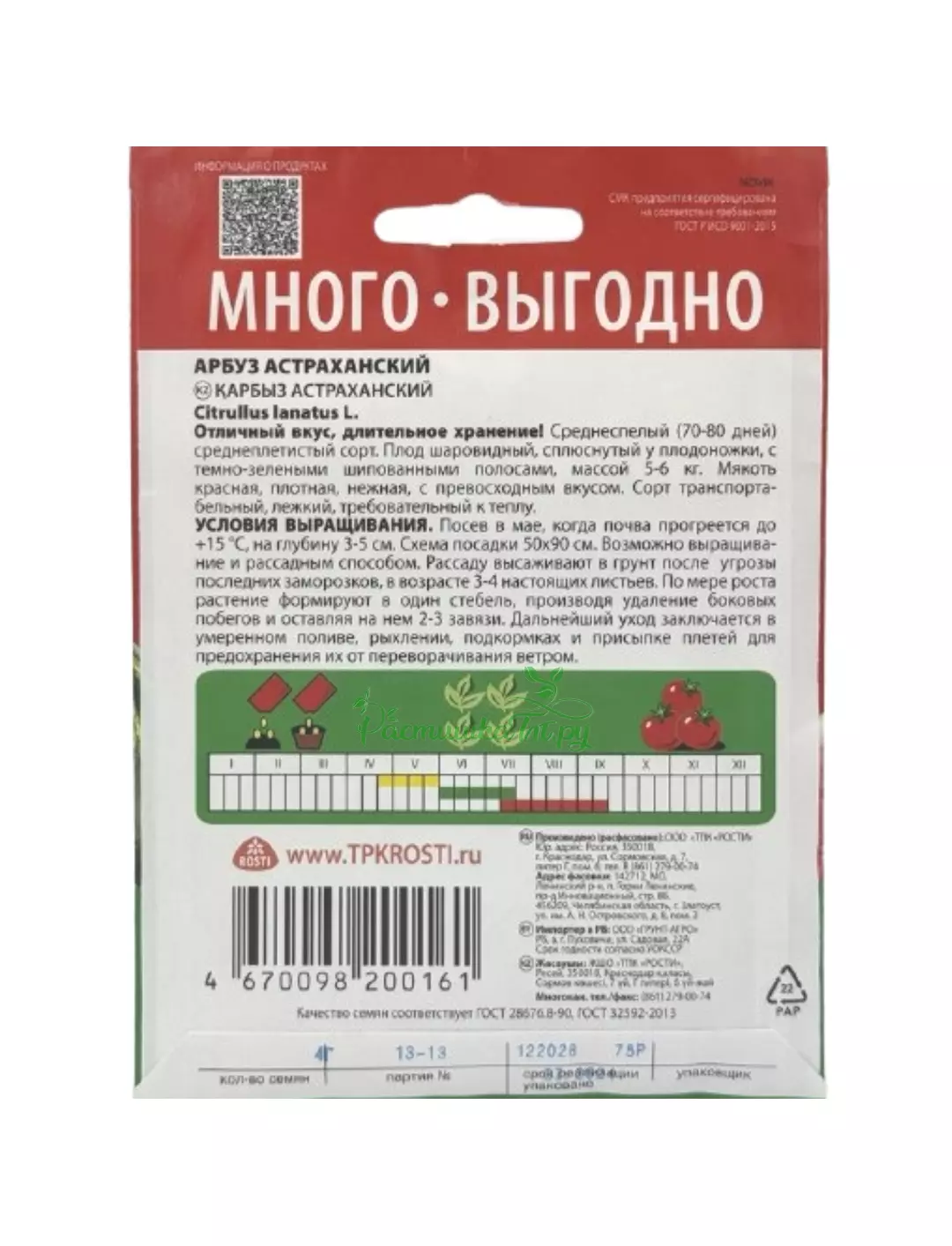 Среднеспелый сорт (70-80 дней) .Вес плода от 5 до 6 кг. Мякоть красная, плотная, нежная. Срок хранения плодов до 2 месяцев без потери вкусовых свойств. Подверженность заболеваниям устойчив к заболеваниям и другим негативным факторам окружающей среды