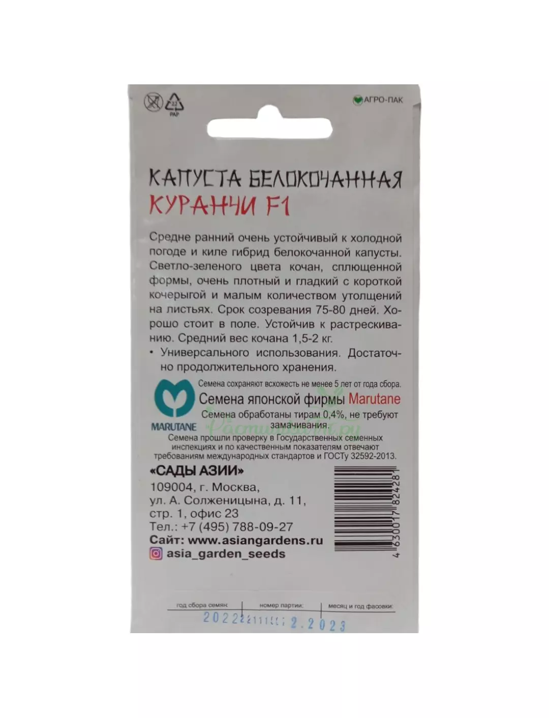 Среднеранний очень устойчивый к холодной погоде и фузариозному увяданию гибрид белокочанной капусты. Светло-зеленого цвета кочан, сплющенной формы, очень плотный и гладкий с короткой кочерыжкой, малым количеством утолщений на листьях. Срок созревания 75-80 дней. Устойчив к растрескиванию. Средний вес кочана 1,5 – 2 кг. Достаточно продолжительного хранения.