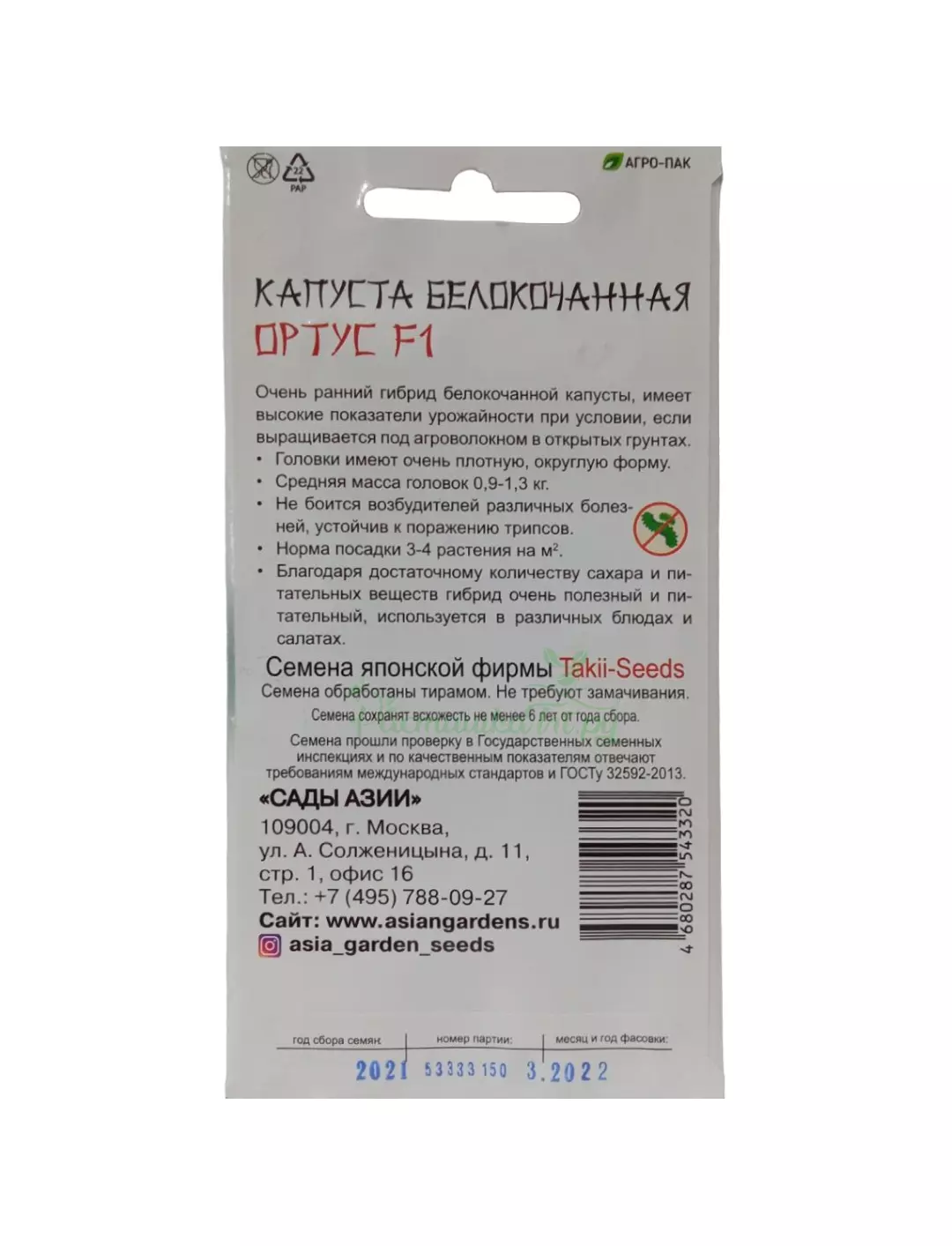 Очень ранний гибрид белокочанной капусты, имеет высокие показатели урожайности. Головки имеют очень плотную, округлую форму. Средняя масса головок 0,9-1,3 кг. Не боится возбудителей различных болезней, устойчив к поражению трипсов. Благодаря достаточному количеству сахара и питательных веществ гибрид очень полезный и питательный, используется в различных блюдах и салатах.