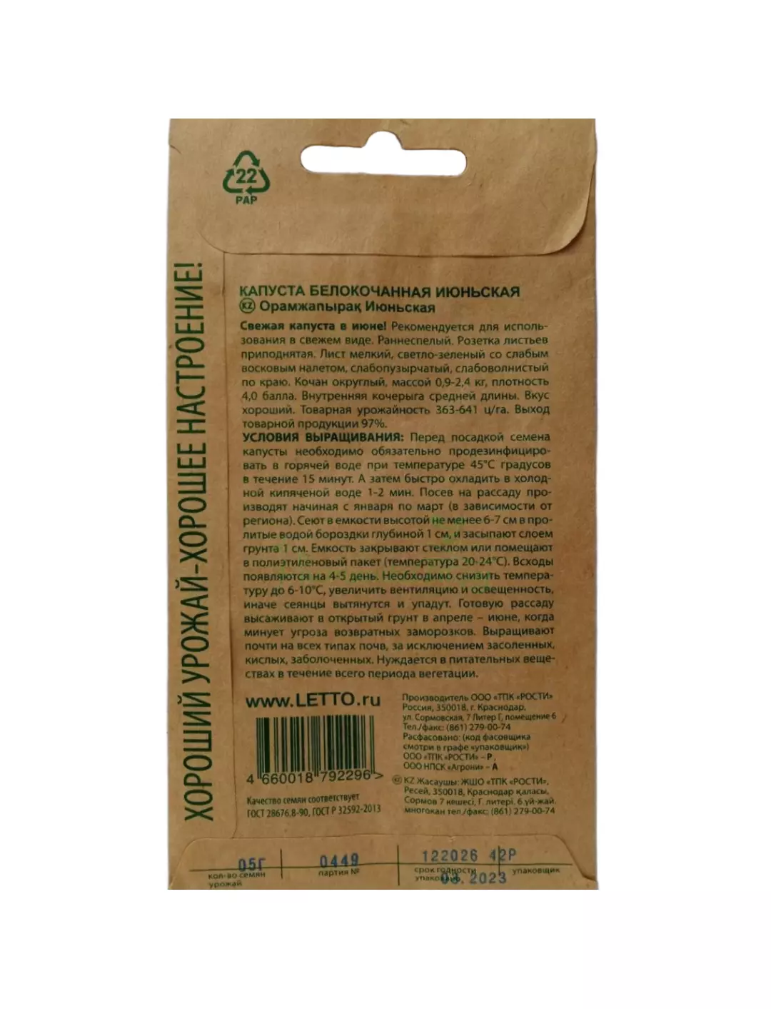 Раннеспелый сорт. Кочан округлый, плотность 4 балла, массой 0,9-2,4 кг. Внутренняя кочерыжка средней длины. Используют в свежем виде в раннелетний период.