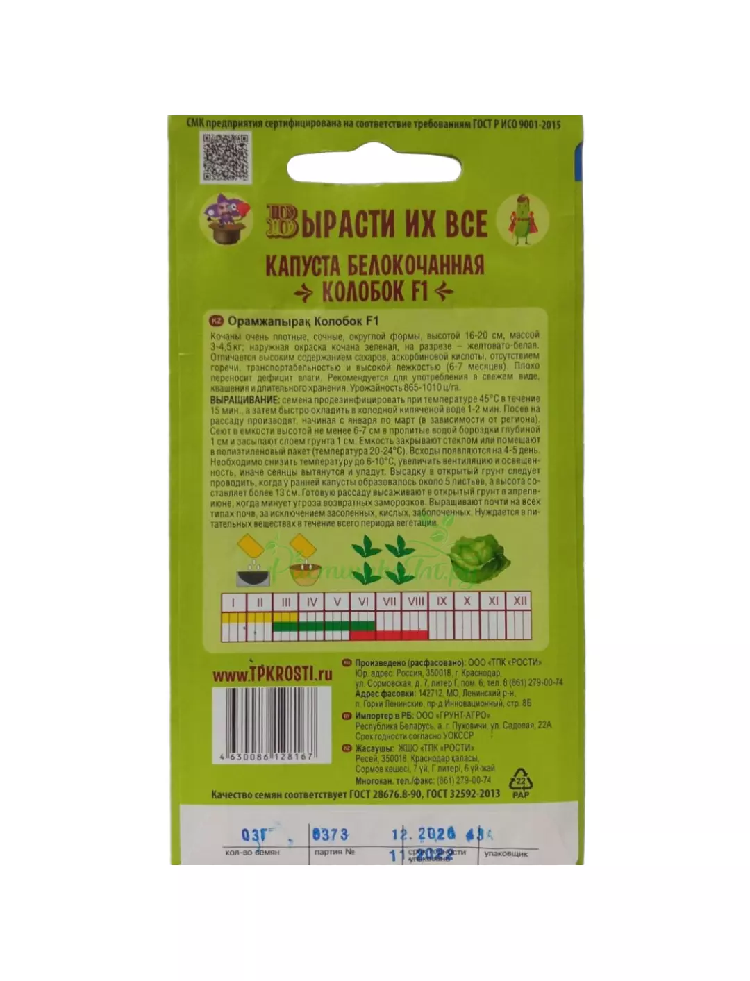 Кочаны очень плотные, сочные, округлой формы, высотой 16 — 20 см, массой 3 — 4,5 кг; наружная окраска кочана зеленая, на разрезе — желтовато-белая.