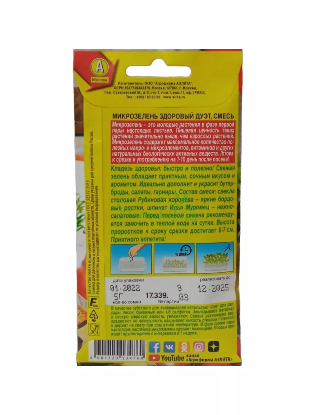 Кладезь здоровья: быстро и полезно! Свежая зелень обладает приятным сочным вкусом и ароматом. Идеально дополнит и украсит бутерброды, салаты, гарниры. Состав смеси: свекла столовая «Рубиновая королева» 50 % – яркие бордовые ростки, шпинат «Илья Муромец» 50 % – нежно-салатовые. Перед посевом семена рекомендуется замочить в теплой воде на сутки. Высота проростков к сроку срезки достигает 6-7 см.
