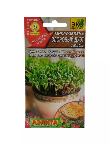 Микрозелень – это молодые растения в фазе первой пары настоящих листьев. Пищевая ценность таких растений значительно выше, чем взрослых растений. Микрозелень содержит максимальное количество полезных макро- и микроэлементов, витаминов и других натуральных биологически активных веществ. Готова к срезке и употреблению на 7-10 день после посева!