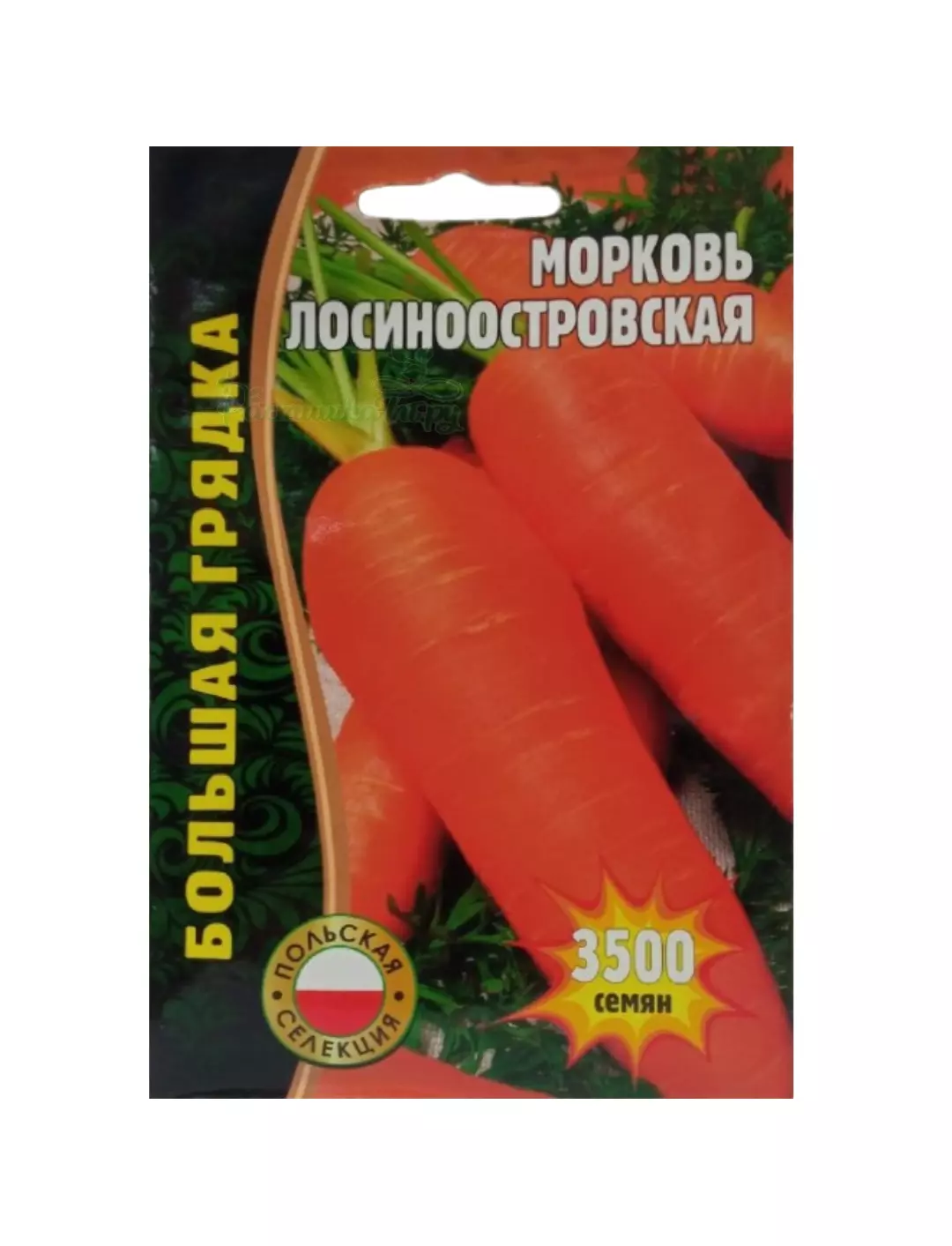 Лосиноостровская морковь имеет корнеплод цилиндрической формы, интенсивно–оранжевой окраски. Его длина от 15 до 20 см, масса 100 и более грамм. Эта разновидность обладает неоспоримыми плюсами: Мякоть довольно сочная, оранжевая. Сердцевина небольшая, ее цвет похож на цвет мякоти. Кончик тупой, поверхность имеет небольшие чечевиночки. Урожайность составляет до 6,5 кг. Лосиноостровская морковь почти не подвержена болезням. Устойчивая к стеблеванию. Она прекрасно переносит холод, из–за чего можно высевать под зиму. Сорт этот универсальный. Его прекрасные вкусовые качества позволяют применять морковь в детском питании и для заготовки соков.