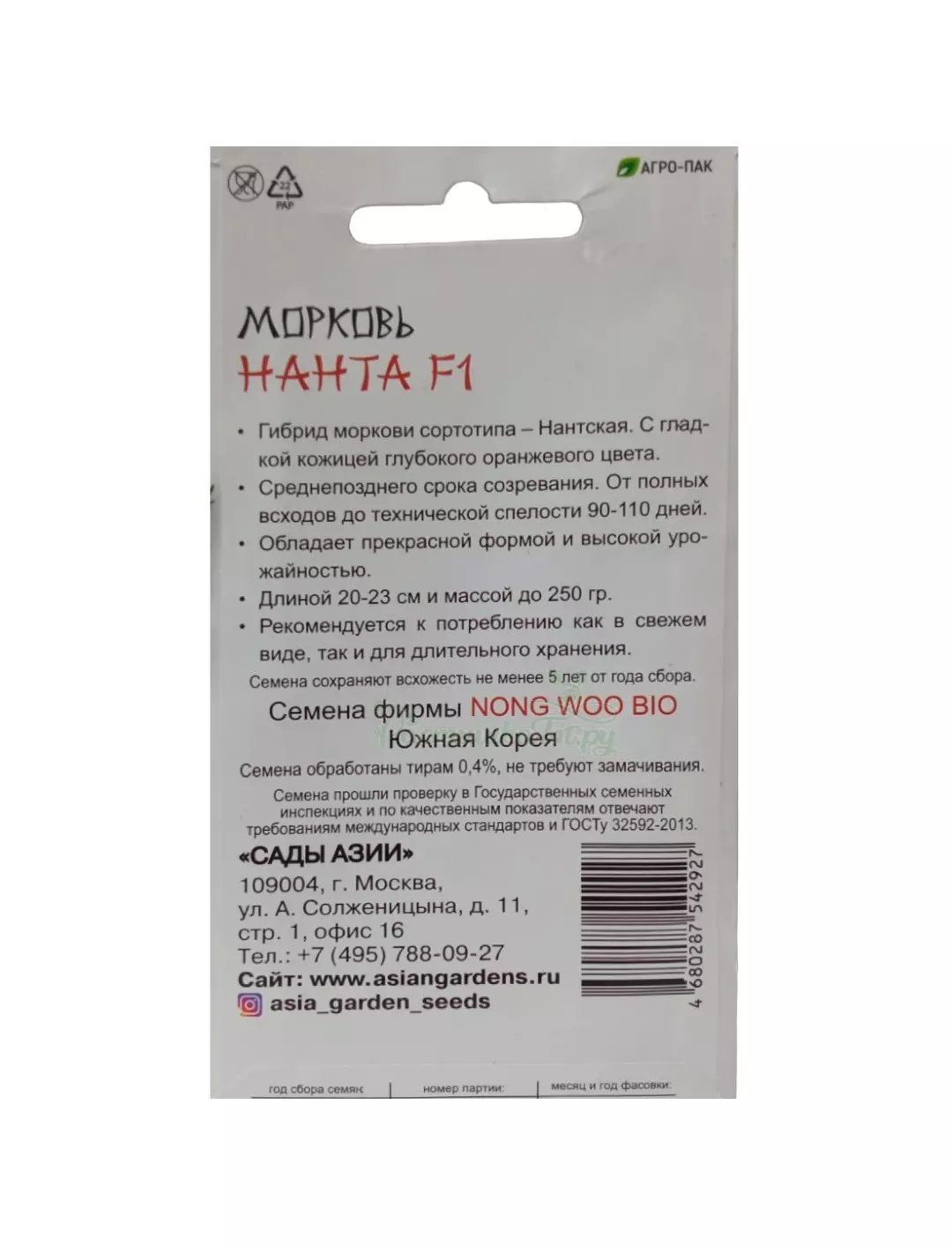 Гибрид моркови сортотипа - Нантская. С гладкой кожицей глубокого оранжевого цвета. Среднепозднего срока созревания. От полных всходов до технической спелости 90-110 дней. Обладает прекрасной формой и высокой урожайностью. Длиной 20-23 см и массой до 250 гр. Рекомендуется к потреблению как в свежем виде, так и для длительного хранения.