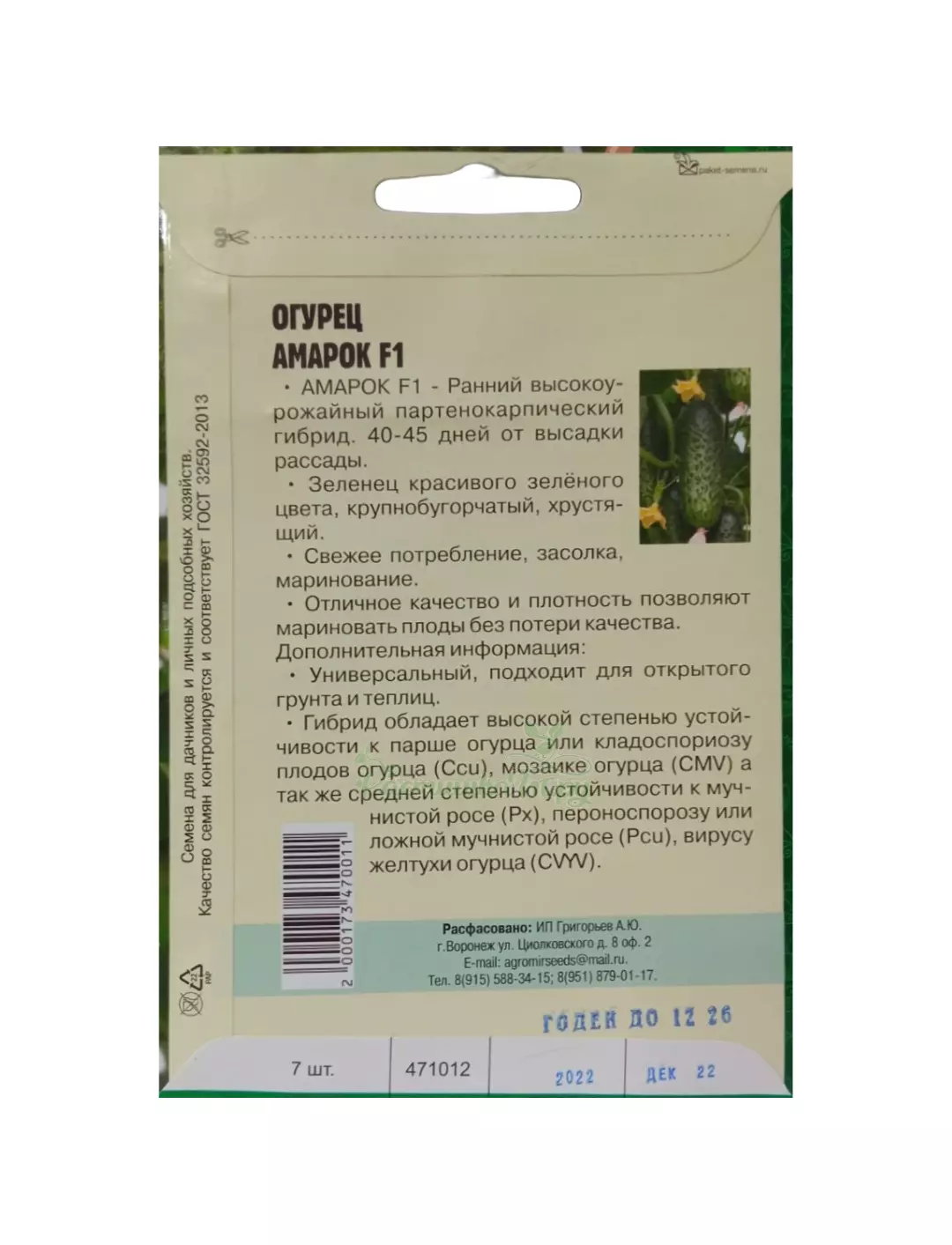 Огурец Амарок F1 7 шт РЕДКИЕ СЕМЕНА