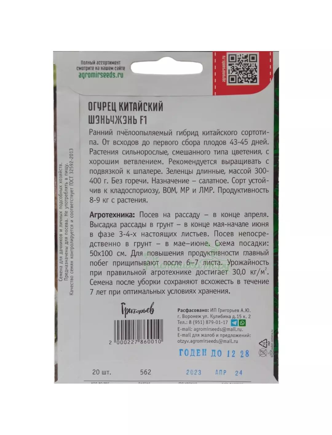 Огурец Китайский Шэньчжэнь F1 20 шт РЕДКИЕ СЕМЕНА