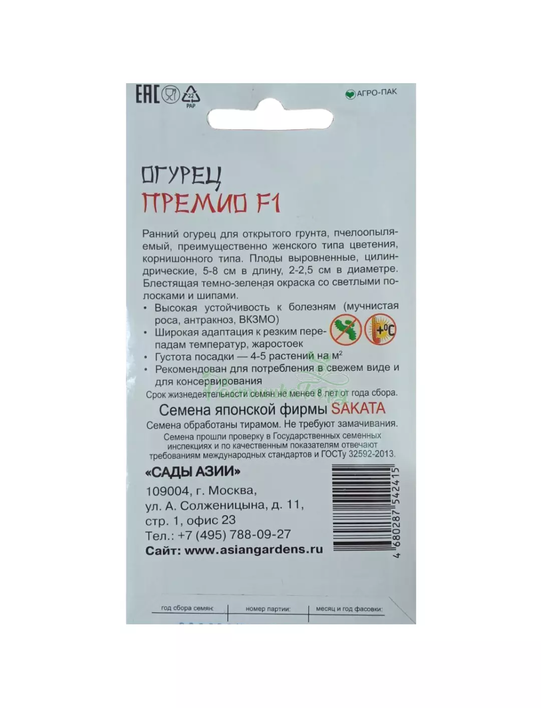 Ранний огурец для открытого грунта., пчелоопыляемый, преимущественно женского типа цветения, корнишонного типа. Плоды выровненные, цилиндрические, 5-8 см в длину, 2-2.5 см в диаметре. Блестящая темно-зеленая окраска со светлыми полосками и шипами. Высокая устойчивость к болезням (мучнистая роса, антракноз, ВКЗМО). Широкая адаптация к резким перепадам температуры, жаростоек. Густота посадки на 1 кв. м. - 4-5 растений. Рекомендован для потребления в свежем виде и для консервирования.