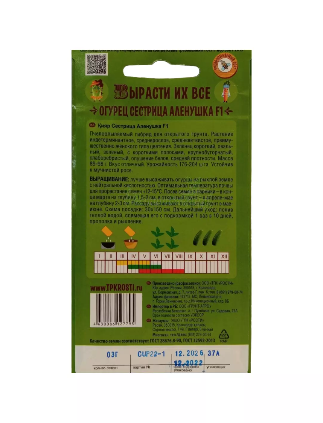 Пчелоопыляемый гибрид для открытого грунта. Зеленец короткий, овальный, зеленый с короткими полосами, крупнобугорчатый, слаборебристый. Масса 89-98 г. Вкус отличный. Устойчив к мучнистой росе.
