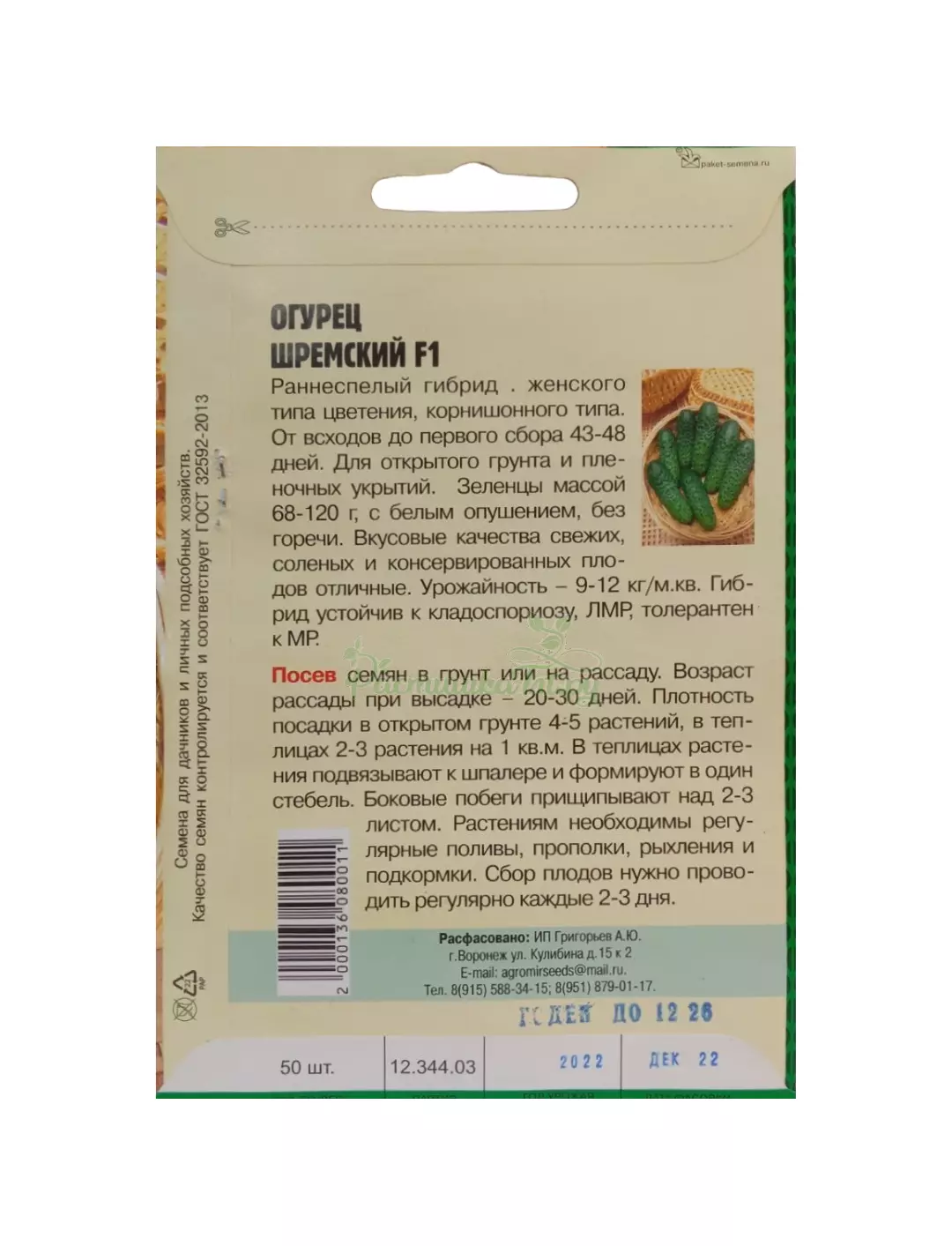 Раннеспелый гибрид женского типа цветения, корнишонного типа. От всходов до первого сбора 43-48 дней. Для открытого грунта и пленочных укрытий. Зеленцы массой 68-120 г, с белым опушением, без горечи. Вкусовые качества свежих, соленых и консервированных плодов отличные. Урожайность – 9-12 кг/м2. Гибрид устойчив к кладоспориозу, ЛМР, толерантен к МР.