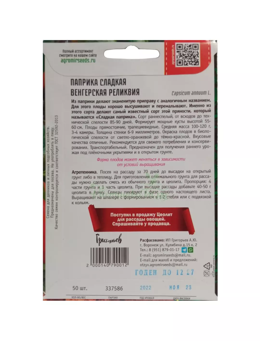 Сорт раннеспелый, от всходов до технической спелости 85-90 дней. Высота растения 55-60 см. Плоды прямостоячие, трапециевидные, 3-4-камерные, массой 100-120 г, толщина стенки 6-9 мм.