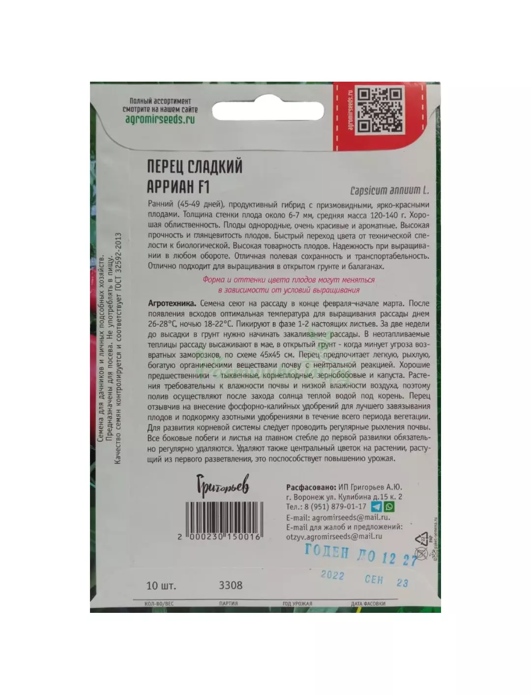 Ранний (45-49 дней), гибрид с призмовидными, ярко-красными плодами. Толщина стенки плода около 6-7 мм, средняя масса 120-140 г. Хорошая облиственность. Плоды однородные, очень красивые и ароматные. Высокая прочность и глянцевитость плодов. Быстрый переход цвета от технической спелости к биологической. Высокая товарность плодов. Надежность при выращивании в любом обороте. Отличная полевая сохранность и транспортабельность. Отлично подходит для выращивания в открытом грунте. Семена сеют на рассаду в конце февраля - начале марта. После появления всходов оптимальная температура для выращивания рассады днем 26-28°С, ночью 18-22°С. Пикируют в фазе 1-2 настоящих листьев. За две недели до высадки в грунт нужно начинать закаливание рассады. В неотапливаемые теплицы рассаду высаживают в мае, в открытый грунт - когда минует угроза возвратных заморозков, по схеме 45*45 см. Перец предпочитает легкую, рыхлую, богатую органическими веществами почву с нейтральной реакцией. Хорошие предшественники – тыквенные, корнеплодные, зернобобовые и капуста. Растения требовательны к влажности почвы и низкой влажности воздуха, поэтому полив осуществляют после захода солнца теплой водой под корень. Перец отзывчив на внесение фосфорно-калийных удобрений для лучшего завязывания плодов и подкормку азотными удобрениями в течение всего периода вегетации. Для развития корневой системы следует проводить регулярные рыхления почвы. Все боковые побеги и листья на главном стебле до первой развилки обязательно регулярно удаляются. Удаляют также центральный цветок на растении, растущий из первого разветвления, это поспособствует повышению урожая.