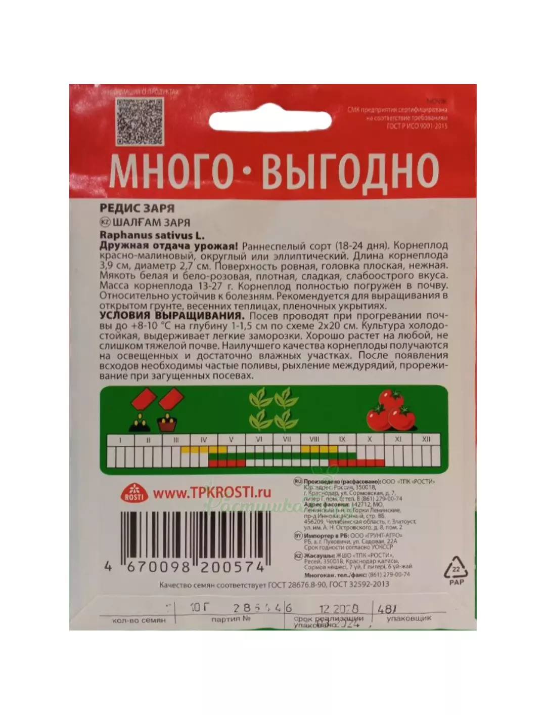 Раннеспелый сорт (18-24 дня). Корнеплод красно-малиновый, округлый или эллиптический. Длина корнеплода 3,9 см, диаметр 2,7 см. Поверхность ровная, головка плоская, нежная. Мякоть белая и бело-розовая, плотная, сладкая, слабоострого вкуса. Масса корнеплода 13-27 г. Корнеплод полностью погружен в землю. Относительно устойчив к болезням. Рекомендуется для выращивания в открытом грунте, весенних теплицах, пленочных укрытиях.