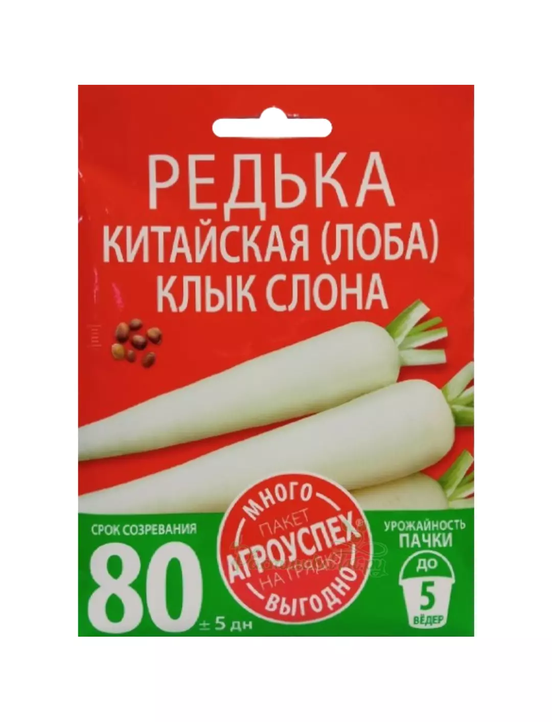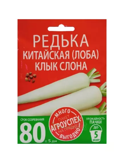 Среднеспелый (70-95 дней) сорт. Корнеплоды белые, удлиненно-цилиндрические, длиной 20-25 см, массой 300-500 гр. Мякоть сочная, нежная, снежно-белая, вкус слабоострый. Рекомендуется для потребления в свежем виде и длительного хранения. Дайкон содержит много солей калия и кальция, клетчатки, пектиновых веществ и витамина С.