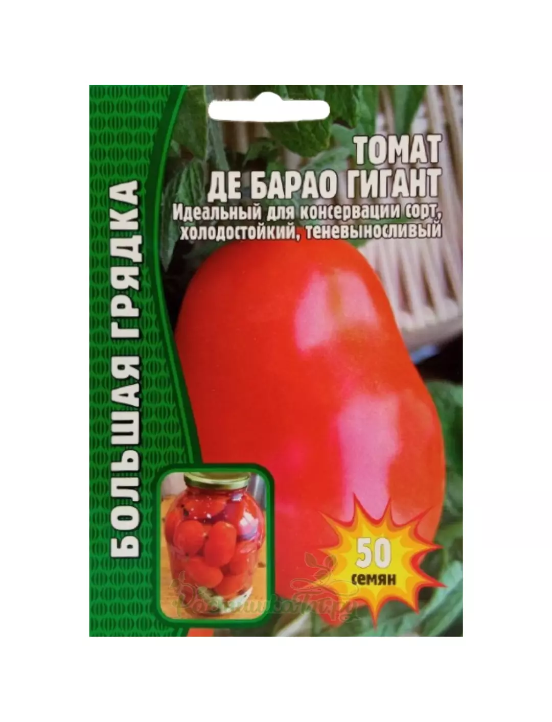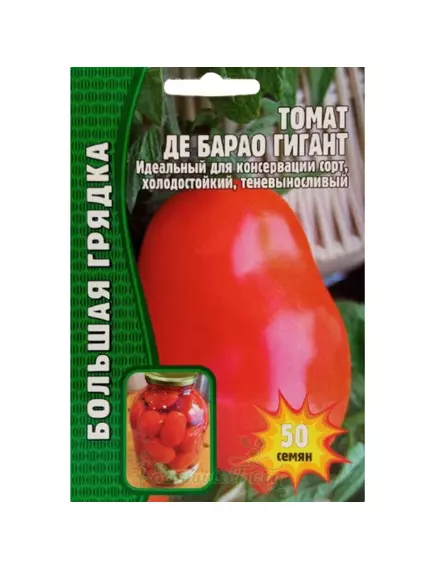Сорт помидора Де Барао Гигант - это позднее растение, которое лучше всего выращивать в защищенном или открытом грунте. Это индетерминант, то есть его рост не ограничен. В отличие от обычного сорта Де Барао, у него большие плоды размером примерно 10x7 см. На одной кисти обычно 4-5 плодов сливовидной формы, которые весят от 70 до 190 грамм. Плоды мясисты, сочны и очень вкусны в свежем состоянии. Для выращивания рассады Де Барао гиганта, семена следует посадить за 50-60 дней до планируемой высадки в постоянное место.