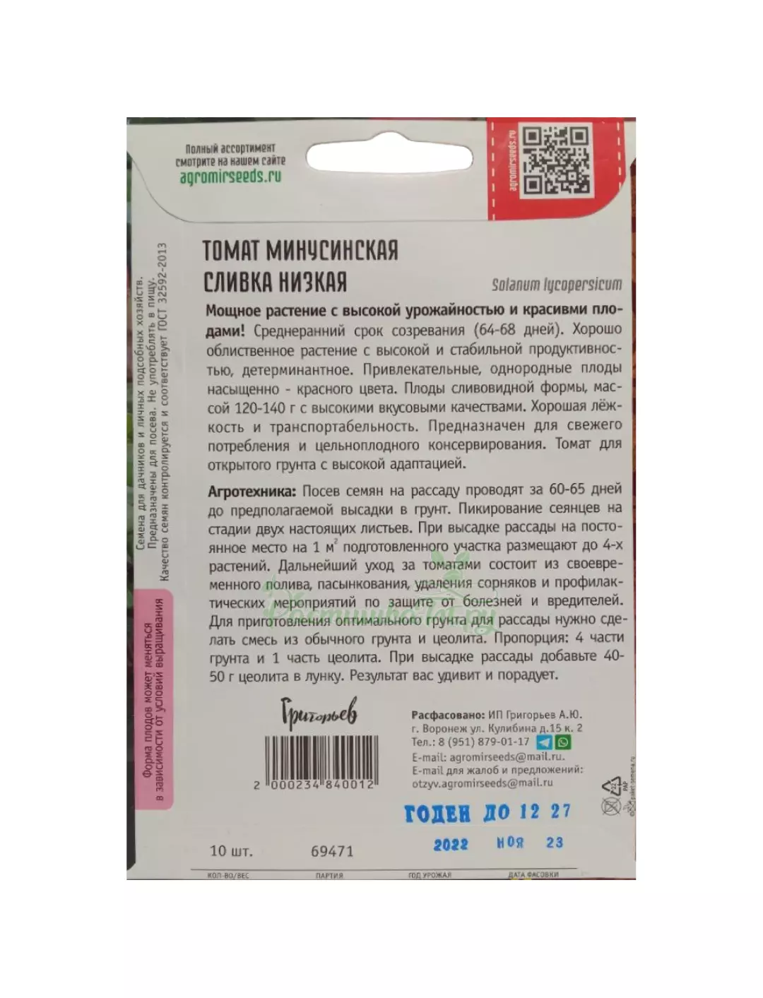Томат Минусинская Сливка Низкая 10 шт РЕДКИЕ СЕМЕНА