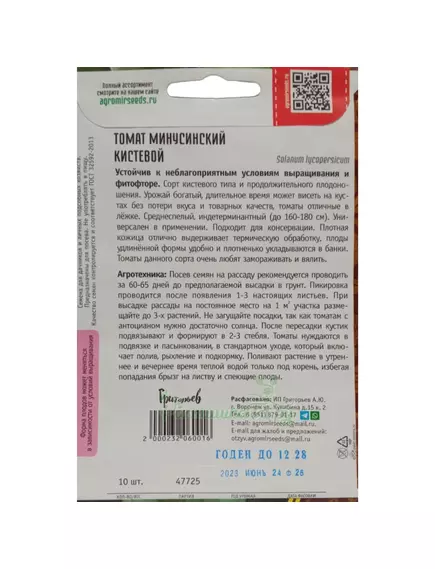 Томат Минусинский Кистевой 10 шт РЕДКИЕ СЕМЕНА