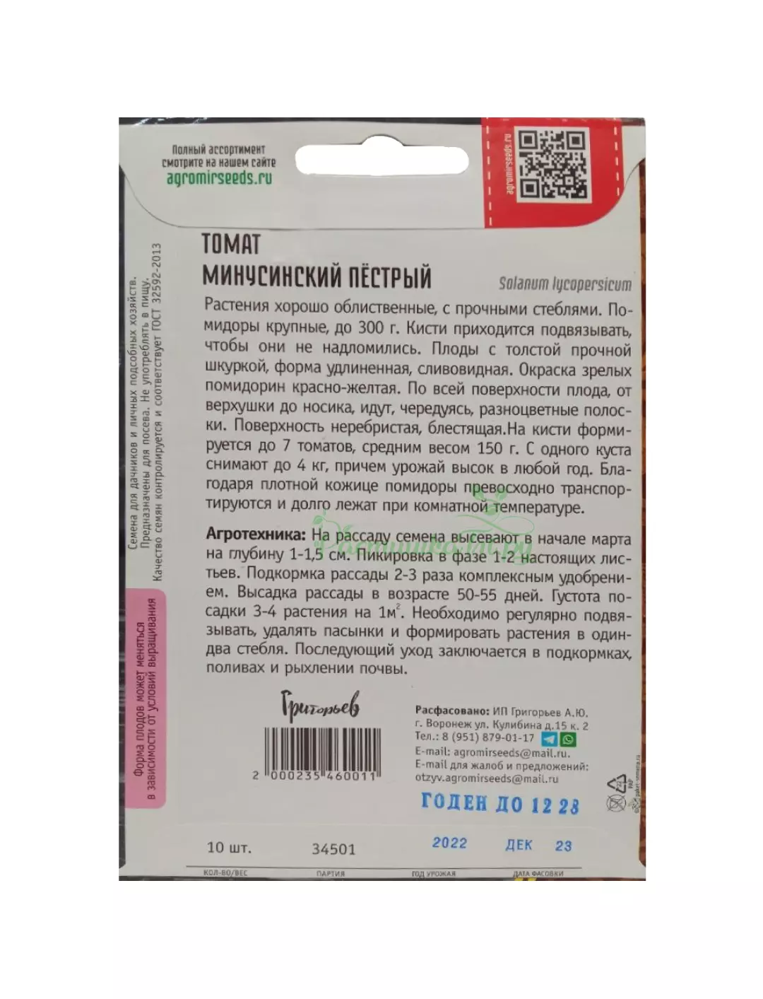 Томат Минусинский Пестрый 10 шт РЕДКИЕ СЕМЕНА