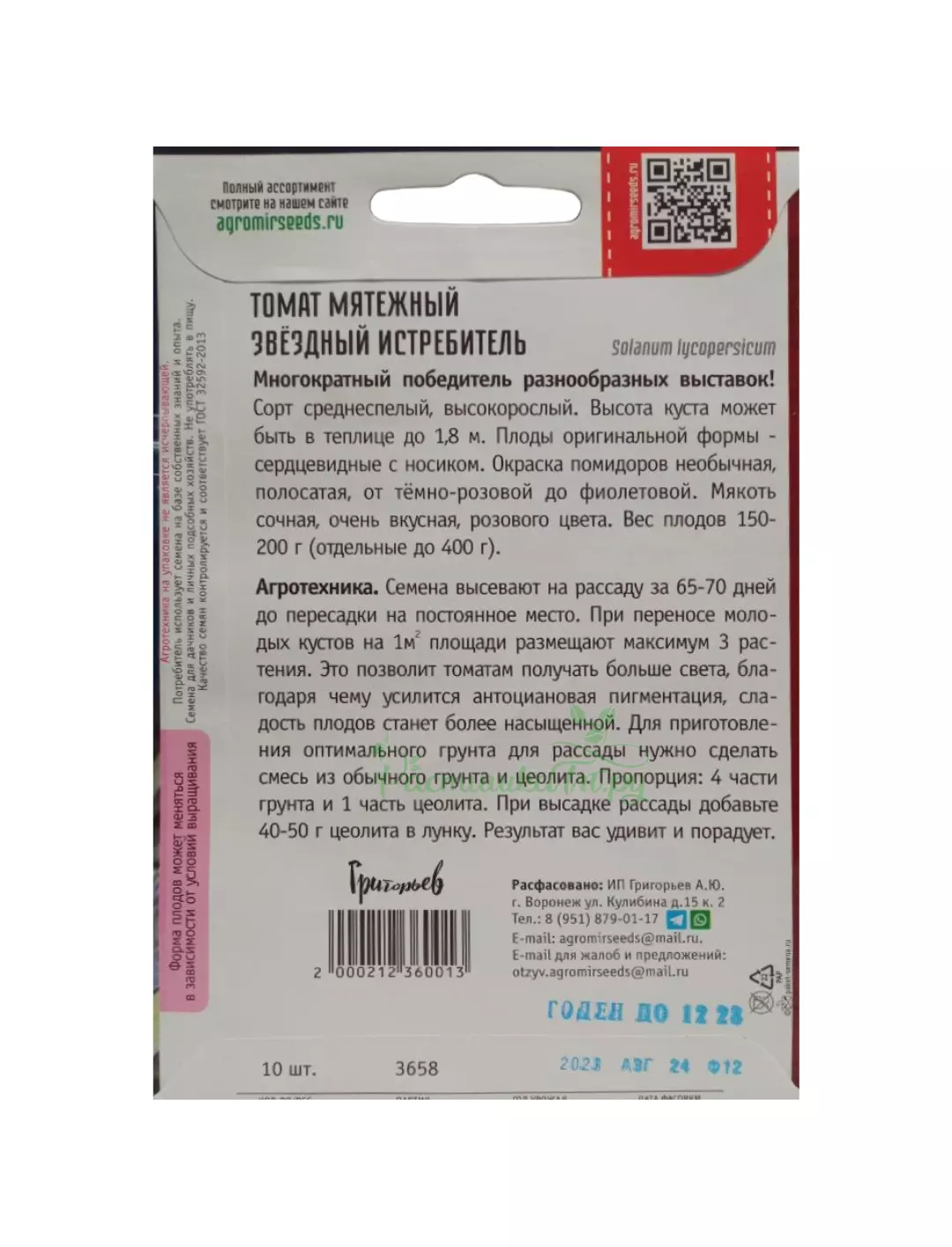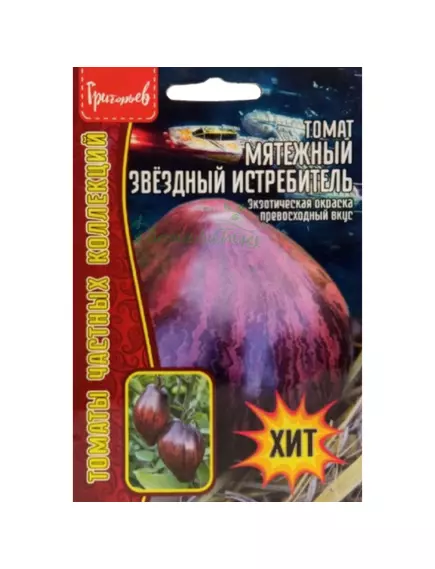 Томат «Мятежный Звёздный Истребитель» — многократный победитель разнообразных выставок. Сорт среднеспелый, высокорослый. Высота куста может быть в теплице до 1.8 метра. Плоды оригинальной формы-сердцевидные с носиком. Окраска помидоров необычная, полосатая, оттемно розовой до фиолетовой. Мякоть сочная, очень вкусная, розового цвета. Вес 150-200 грамм (отдельные до 400 г.)