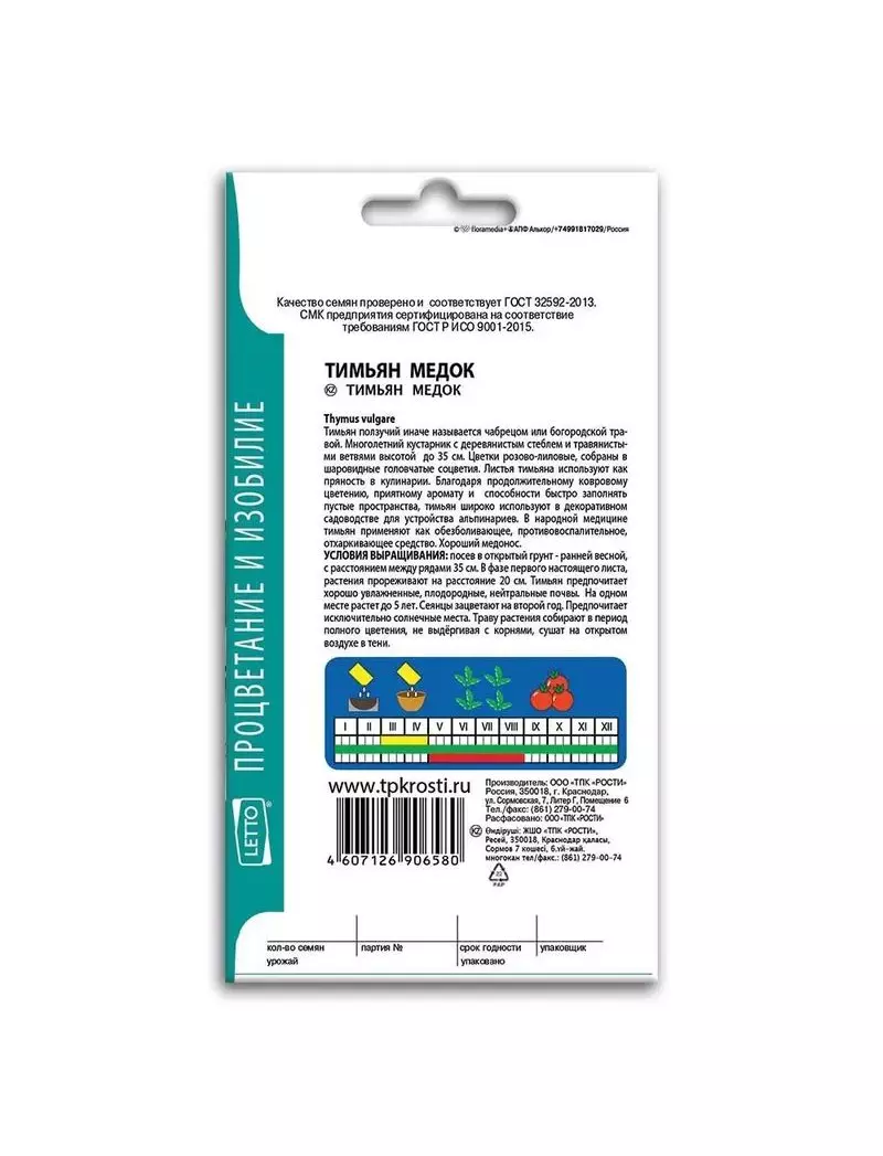 Тимьян ползучий иначе называется чабрецом или богородской травой. Многолетний кустарник с деревянистым стеблем и травянистыми ветвями высотой до 35 см. Цветки розово-лиловые, собраны в шаровидные головчатые соцветия. Листья тимьяна используют как пряность в кулинарии. Благодаря продолжительному ковровому цветению, приятному аромату и способности быстро заполнять пустые пространства, тимьян широко используют в декоративном садоводстве для устройства альпинариев. В народной медицине тимьян применяют как обезболивающее, противовоспалительное, отхаркивающее средство. Хороший медонос.