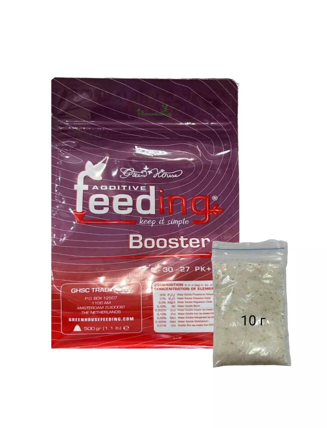 Powder Feeding Booster специально разработан для обеспечения растений во время фазы цветения нужным количеством фосфора, калия и магния. Кроме того, содержит множество микроэлементов, которые необходимы растениям для увеличения цветения. Улучшает формирование и густоту цветков. Можно использовать с другими удобрениями и стимуляторами.