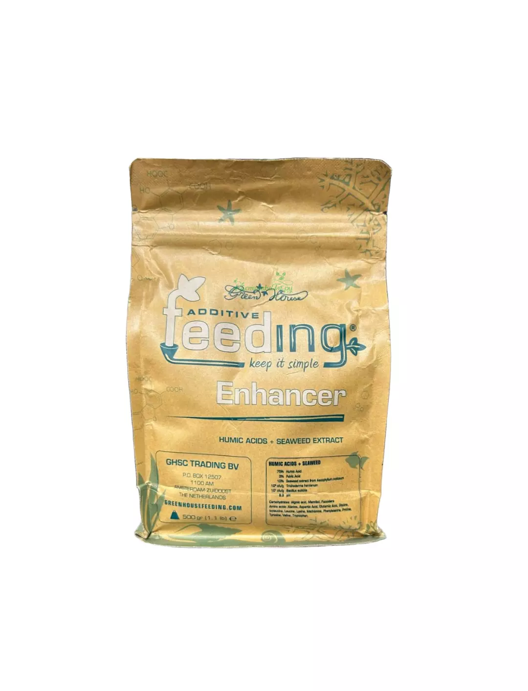 Enhancer – это смесь гуминовой кислоты, экстракта морских водорослей, грибка Trichoderma harzianum* и бактерий Bacillus subtilis