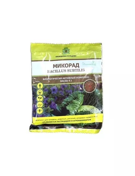 Микорад BACSU 4.1 бацилла - биологически активный комплекс для защиты растений от болезней на основе сенной палочки Bacillus subtilis.