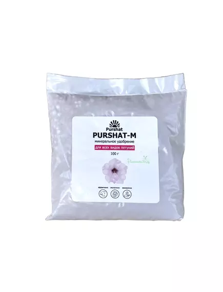 Пуршат-М Удобрение водорастворимое для петуний 100 г — специализированное комплексное водорастворимое удобрение для стимуляции обильного и продолжительного цветения петуний и других декоративных ампельных культур.