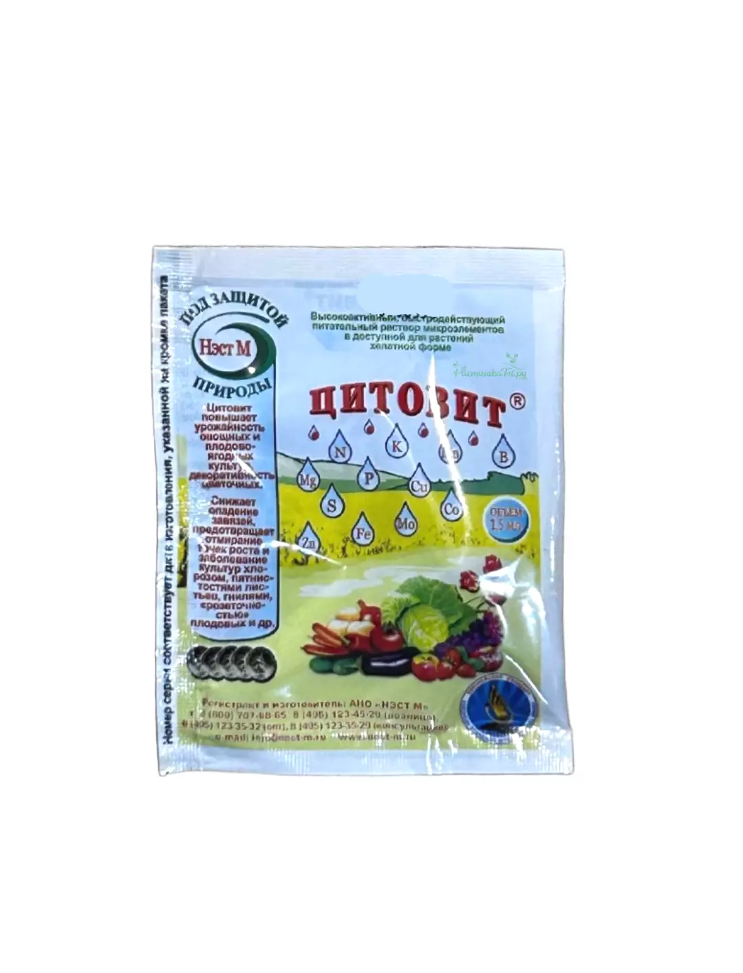- Для корневых и некорневых подкормок всех культур (овощных, плодово-ягодных, цветочных и др.)