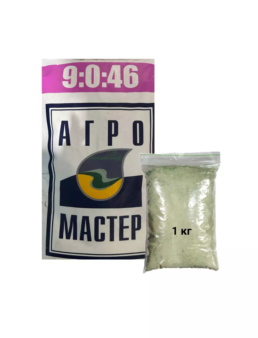 АгроМастер 9-0-46 используется при орошении растений, которые развиваются на открытом грунте с высоким количеством азота и фтора и низким содержанием калия.