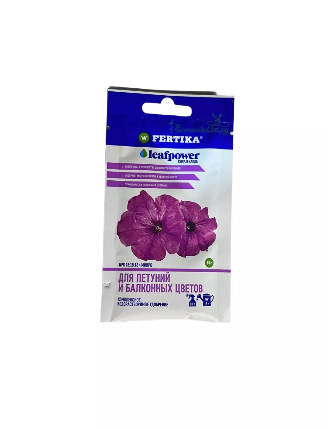 Представляем Fertika Leaf Power для петуний и балконных цветов – высокоэффективное листовое удобрение, разработанное специально для обеспечения роскошного и продолжительного цветения, а также здорового роста ваших любимых петуний, бегоний, лобелий, сурфиний и других балконных красавиц.