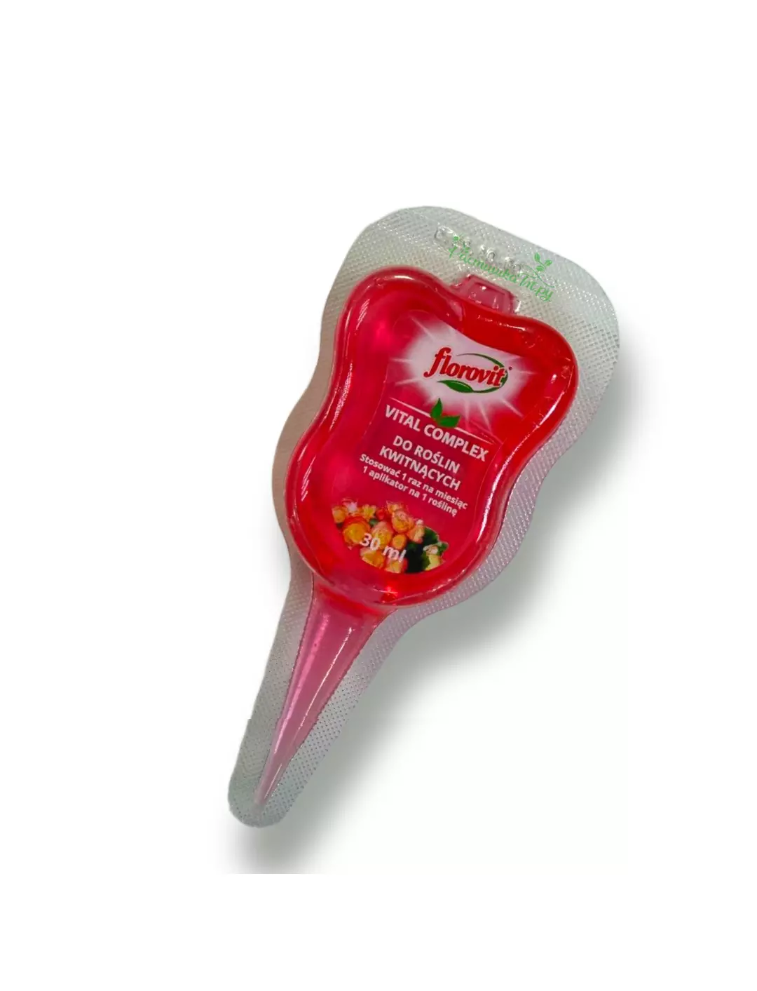 Комплекс Florovit Vital - это современная и готовая к использованию система для всех видов цветущих растений. Специально разработанный комплекс укрепляющих веществ улучшает жизнеспособность и состояние растений, поддерживает корневую систему и влияет на длительное и обильное цветение. Регулярное использование улучшает состояние почвы и положительно влияет на естественную устойчивость растений. Способ применения: Отрежьте наконечник на месте разреза и поместите сопло аппликатора в основание так, чтобы образец свободно вытекал. Время опорожнения зависит от качества и влажности субстрата. Vital Complex можно использовать в течение всего года. Используйте один раз в месяц, 1 аппликатор на 1 растение. Не забывайте регулярно поливать растения.