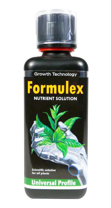 Универсальное удобрение и стимулятор роста для всех видов растений. Прекрасно подходит для растений, прошедших стадию клонирования а так же всех цветочных растений. Formulex подходит идеально для подкормки саженцов и рассады, а так же листовой подкормки и предпосевной обработки субстратов. Характерной особенностью препарата является стабилизированное значение кислотности pH. То есть, когда вы его используете, вам уже не нужно корректировать значение кислотности с помощью специальных понизителей. Formulex является препаратом, в котором есть все для подкормки растения. Микроэлементы, макроэлементы, стимуляторы роста и фитогормоны. Formulex производится в соответствии с высоким стандартом качества, из сырья, прошедшего строгий лабораторный контроль. Этот препарат из линейки продуктов от компании Growth Technology, совершил настоящую революцию в садоводстве. Для растений выращиваемых в грунте: 5мл развести в 1 литре поливочной воды, применять еженедельно Для гидропоники и любых вариантов гидросистем: Для полноценного питания растений 10мл развести в 1литре воды. Листовая подкормка: Для максимально быстрого эффекта, при опрыскивании по листу, 5мл концентрата разбавляют в 1 л чистой воды и проводят опрыскивание (можно 1раз в неделю)