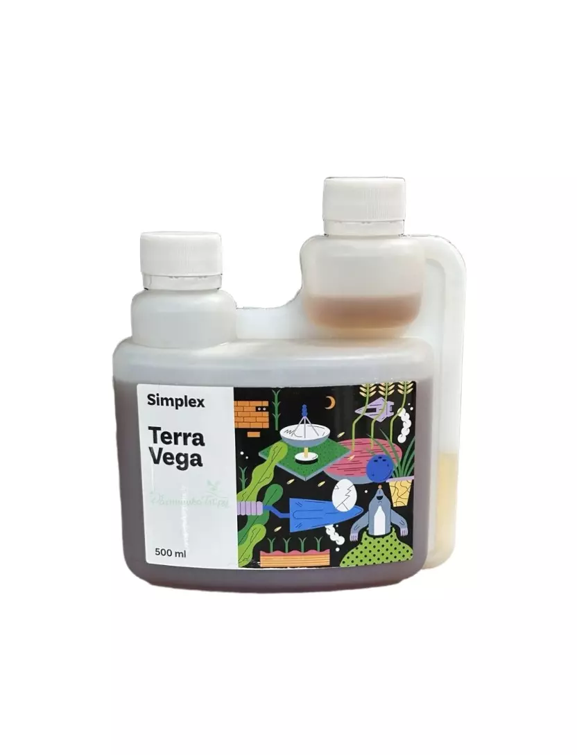 SIMPLEX Terra Vega - универсальное, комплексное удобрение, содержащее все необходимые на стадии вегетации и предцвета компоненты; может использоваться в любых почвосмесях, в том числе предварительно удобренных и используемых повторно, в условиях открытого и закрытого грунта. Преимущества: Простота использования Хорошо растворяется в воде Стимулирует рост растения до стадии предцвета Способствует правильному развитию надземной части и корневой системы растения Поддерживает развитие правильной микрофлоры в прикорневой зоне, создает условия для образования микоризы Легко дозируется благодаря удобной бутылке с дозатором Состав: NPK 3-1-4 Общее содержание азота (N) — 3% (0,8% аммиачный азот; 1,9% нитратный азот; 0,3% органический азот) Растворимый фосфор (Р2О5) — 1% Растворимый калий (К2О) — 4% Магний (MgO) Сера (SO4) Тиамин (Витамин В1) Бетаин (Витамин В4) Инозитол (Витамин В8) Биотин (Витамин Н) Бор (В) Марганец (Mn) в виде хелата EDTA Железо (Fe) в виде хелатов DPTA и EDDTA Медь (Cu) в виде хелата EDTA Цинк (Zn) в виде хелата EDTA Молибден (Мо) Сапонины (Экстракт юкки) Фульвокислоты биологического происхождения Производство – Россия