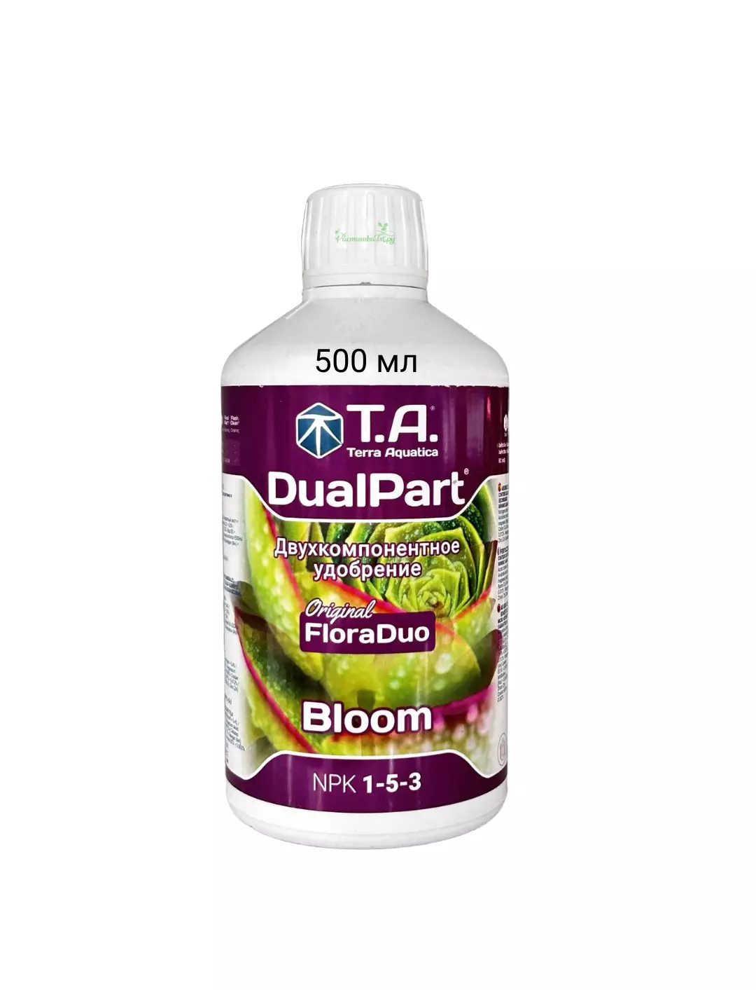 Второй из двух компонентов высокоэффективной двухкомпонентной системы минерального удобрения, разработанной для фазы цветения и плодоношения растений. T.A. DualPart Bloom обеспечивает сбалансированное питание для обильного цветения, формирования крупных плодов/соцветий и максимального урожая. Используется в комбинации с T.A. DualPart Grow на протяжении всего жизненного цикла растени