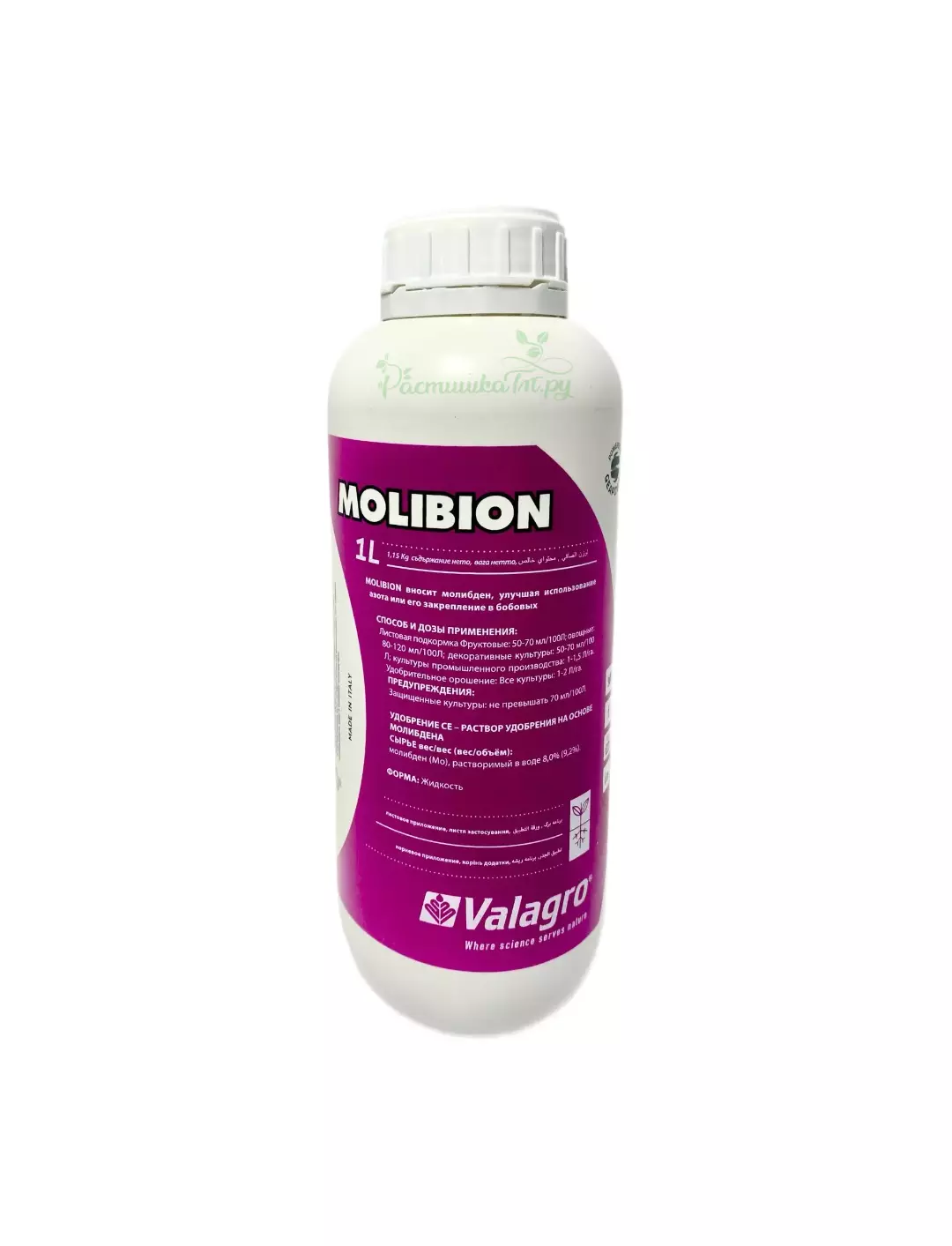 Удобрение Молибион - обогащает молибденом. Способствует усвоению азота. Молибден ускоряет процесс преобразования в растениях нитратного азота в органические вещества (аминокислоты и белки).