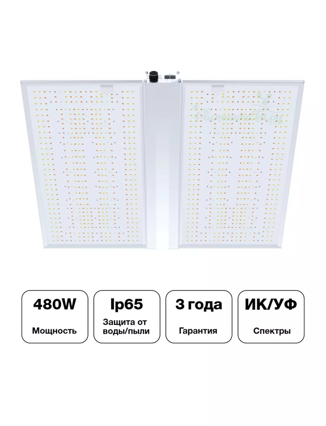 • Полный спектр (Full Spectrum): Обеспечивает идеальное освещение для всех этапов роста — от вегетации до обильного цветения и плодоношения.