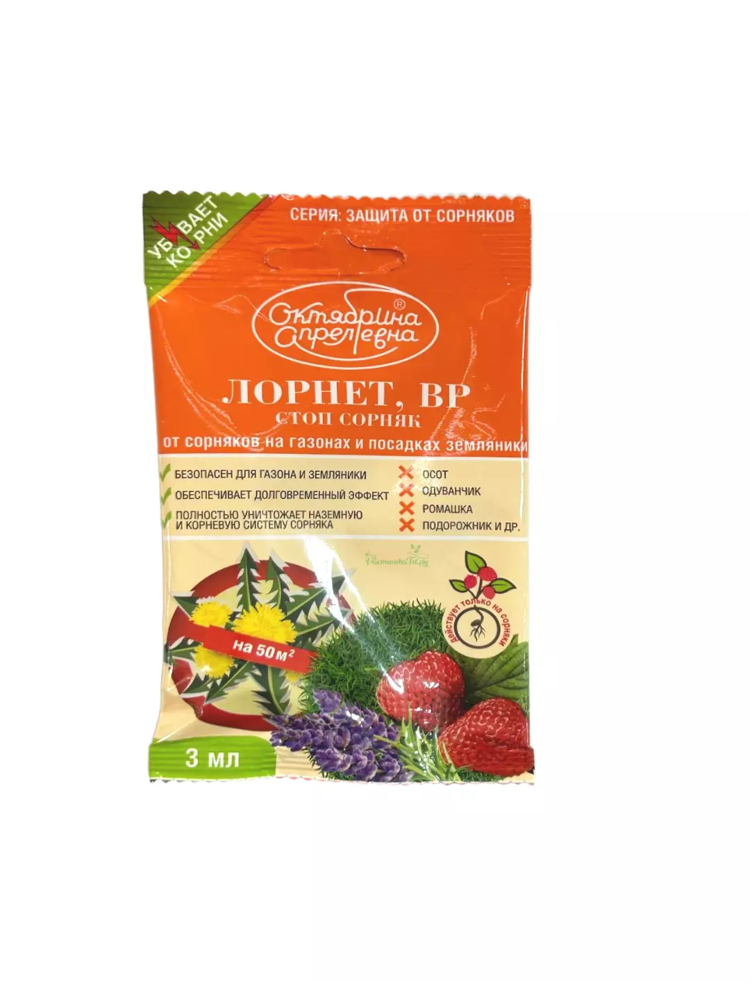 Лорнет Стоп Сорняк — системный гербицид избирательного действия, который хорошо уничтожает однолетние и многолетние двудольные сорняки.