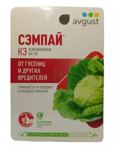 Средство от гусениц на овощных и плодовых культурах Avgust Сэмпай, КЭ - эффективное средство для уничтожения различных вредителей. Способствует нарушению процесса питания личинок, а также затормаживает откладку яиц взрослыми особями насекомых. Средство обладает продолжительным защитным действием. Препарат разводят в небольшом количестве воды, после чего доводят до необходимого объема.