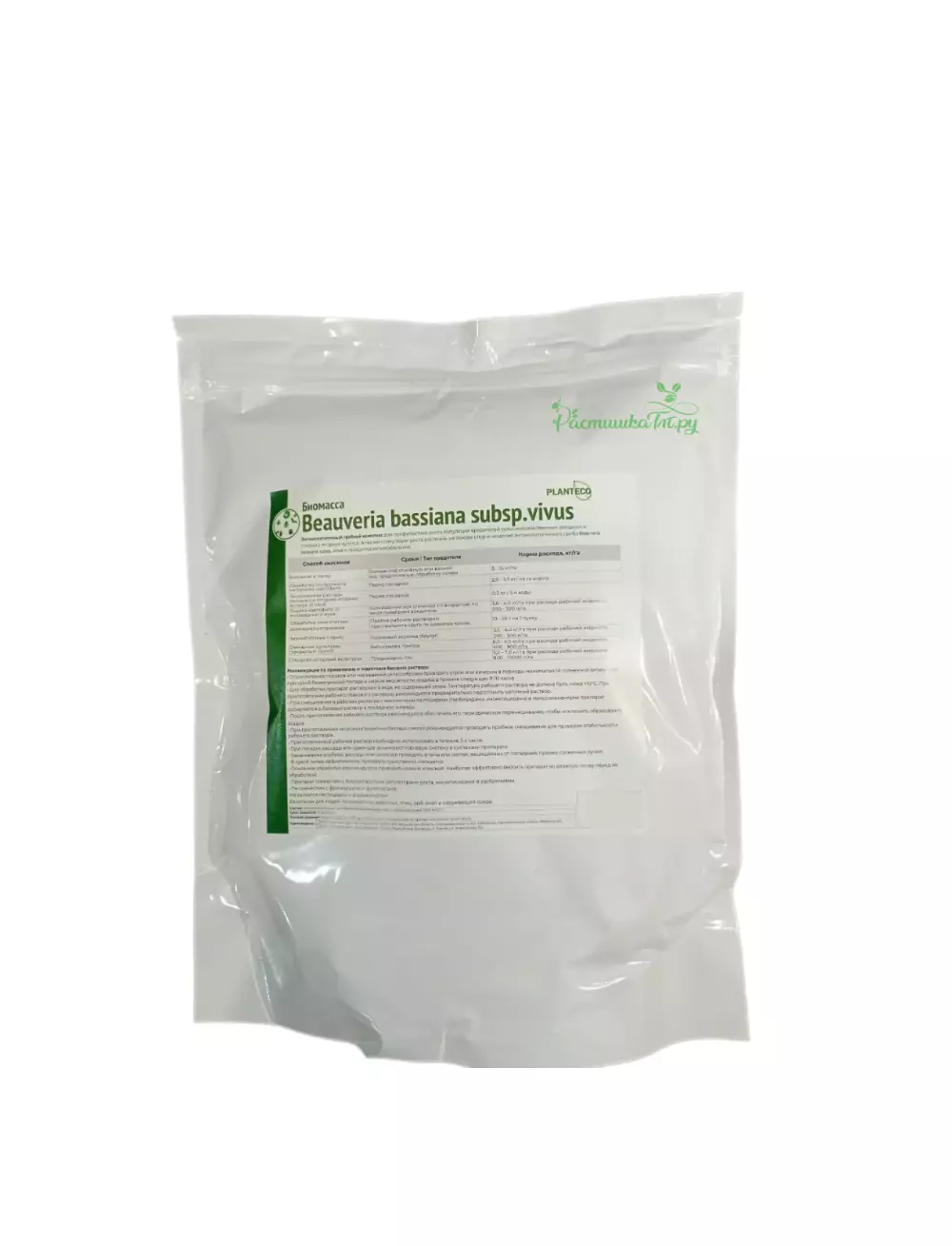 Биомасса Beauveria bassiana subsp.vivus энтомопатогенный грибной комплекс для профилактики роста популяций вредителей овощных и плодово-ягодных культур, а так же стимуляции роста растений на основе спор и мицелия энтомопатогенного гриба.