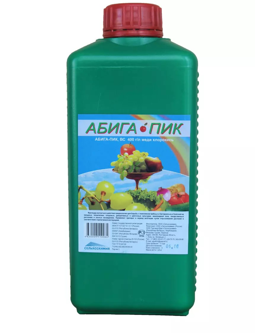 Абига-Пик — это контактный фунгицид, предназначенный для борьбы с различными грибковыми и бактериальными заболеваниями на различных сельскохозяйственных культурах, включая овощи, фрукты, декоративные растения, виноград и лесные насаждения.