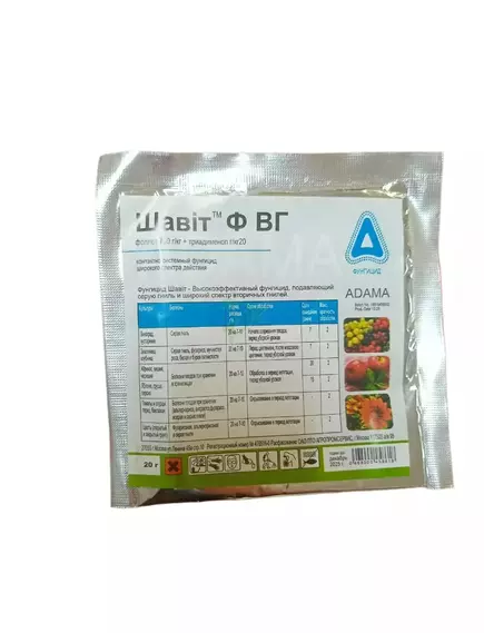 Шавит - уникальный фунгицид с защитным и системным механизмами действия. С его помощью у винограда подлежат лечению гнили, пятнистости, фитофтороз, парша, оидиум, милдь и другие болезни. Фунгицид содержит 2 активнодействующих вещества: фолпет из класса фталимидов (70%) и триадименол из класса триазолов (2%). Фолпет нарушает процесс деления и передвижения клеток гриба, а триадименол меняет мембранные функции.