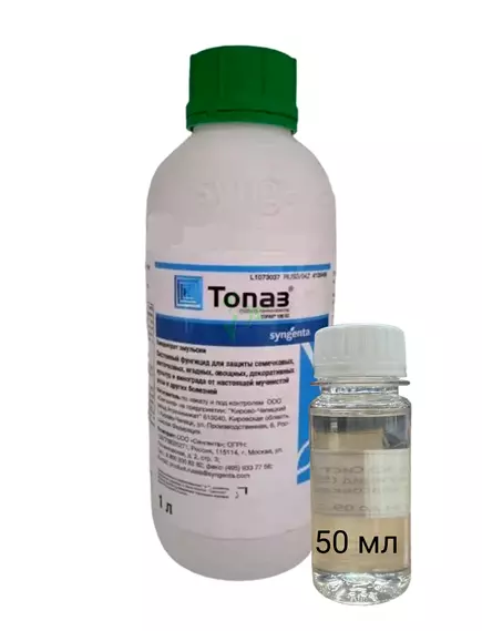 Топаз - системный фунгицид с профилактическим и лечебным действием, обладает высокой эффективностью против возбудителей мучнистой росы и др болезней.